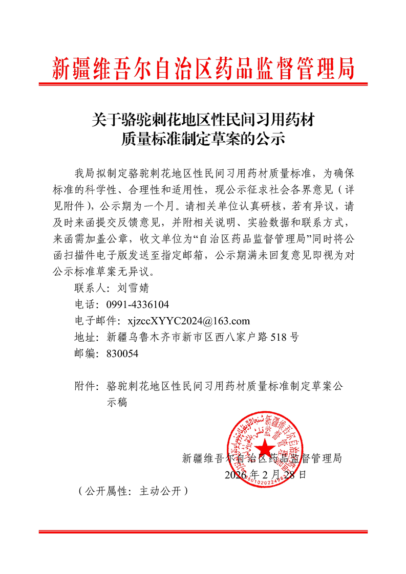新疆維吾爾自治區(qū)藥品監(jiān)督管理局關(guān)于駱駝刺花地區(qū)性民間習(xí)用藥材質(zhì)量標(biāo)準(zhǔn)制定草案的公示
